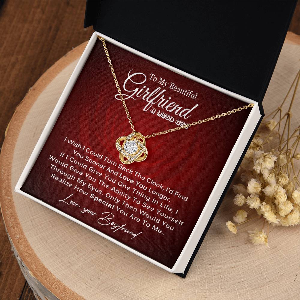 Imagine her reaction receiving this beautiful Love Knot Necklace. Representing an unbreakable bond between two souls, this piece features a beautiful pendant embellished with premium cubic zirconia crystals. Surprise your loved one with this gorgeous gift today!