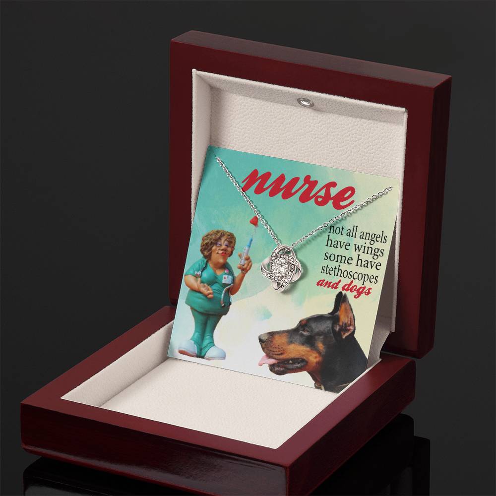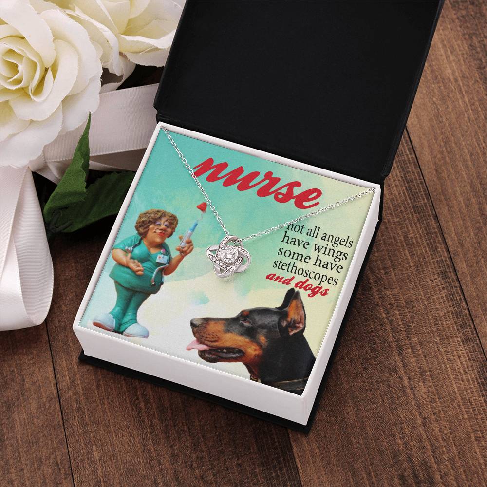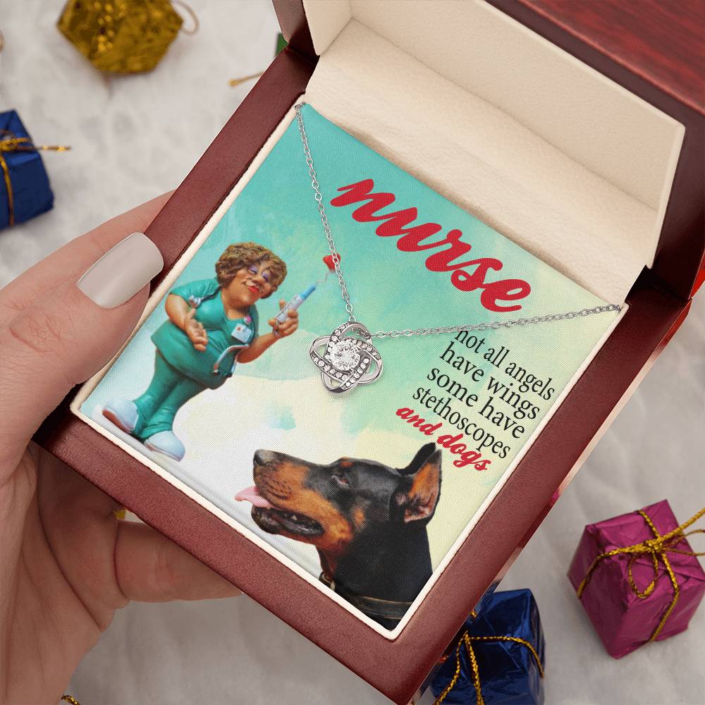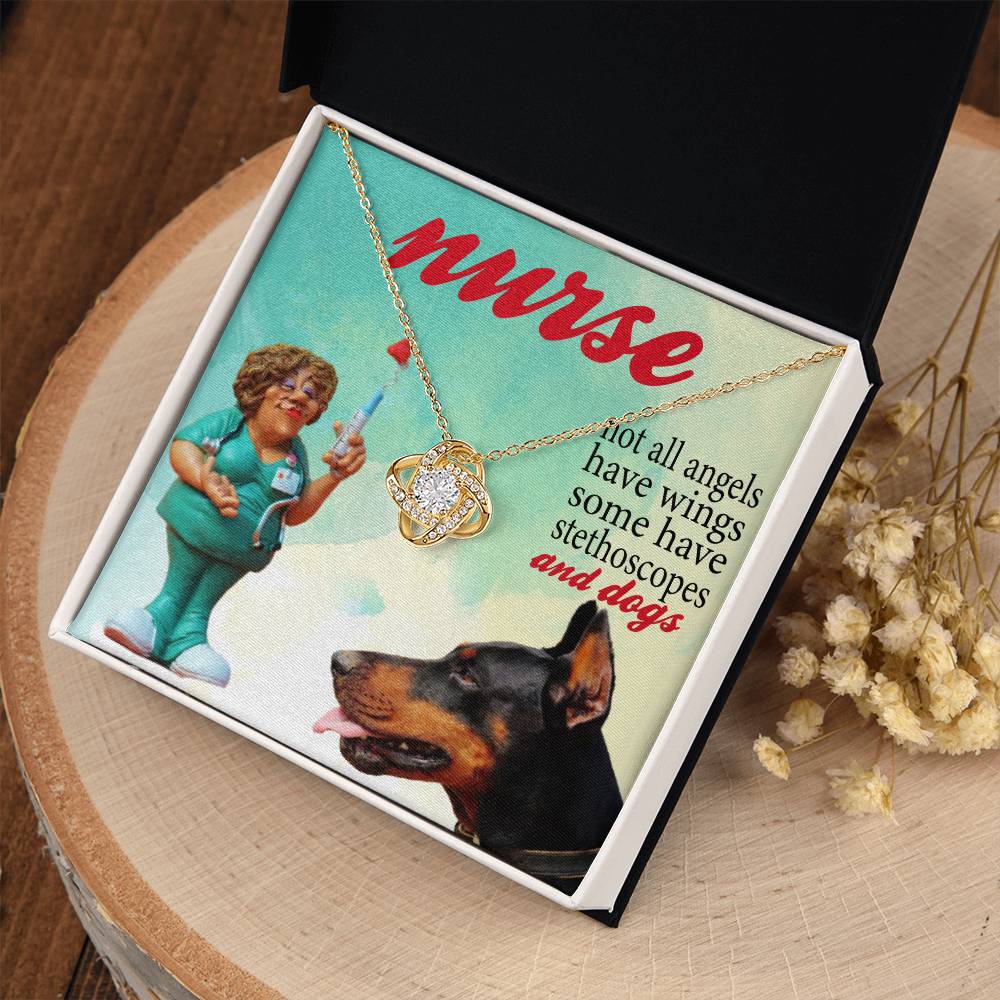 • Dog Lover Nurse Love Knot Necklace, Dog Nurse, Dog Lover Necklace, Not All Angel Have Wings Some Have Stethoscope & Dogs Nurse Dog Mom