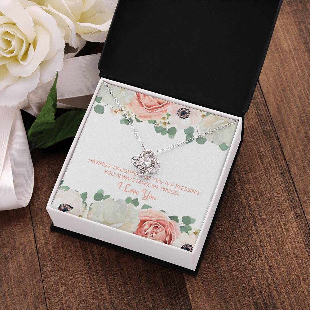 • Having A Daughter Like You Is A Blessing | Stunning Artisan Crafted 14k White Gold Love Knot Necklace