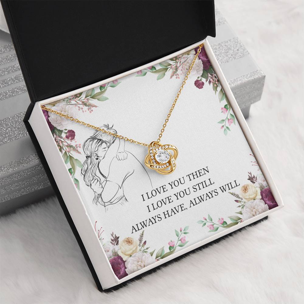 Imagine her reaction receiving this beautiful Love Knot Necklace. Representing an unbreakable bond between two souls, this piece features a beautiful pendant embellished with premium cubic zirconia crystals. Surprise your loved one with this gorgeous gift today!