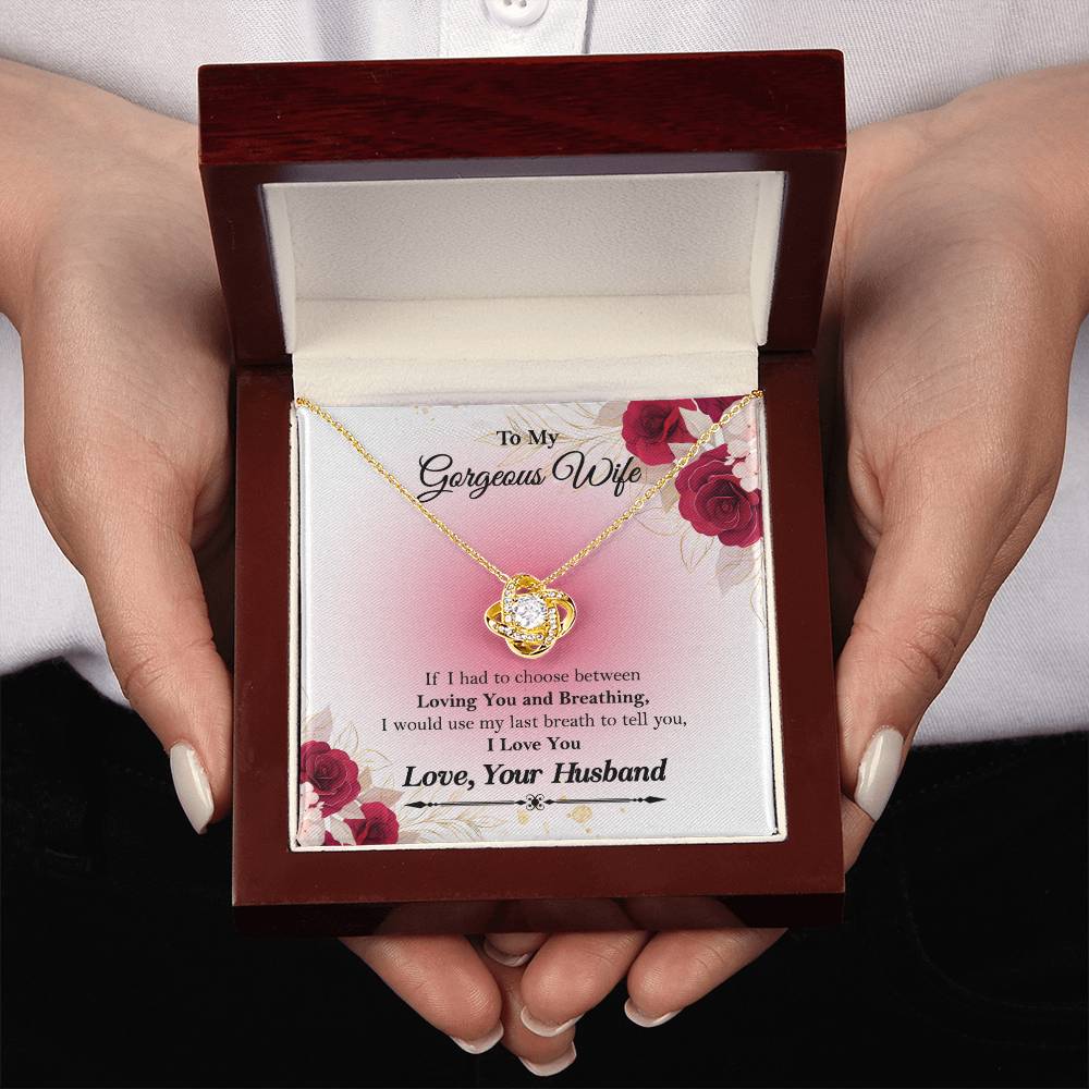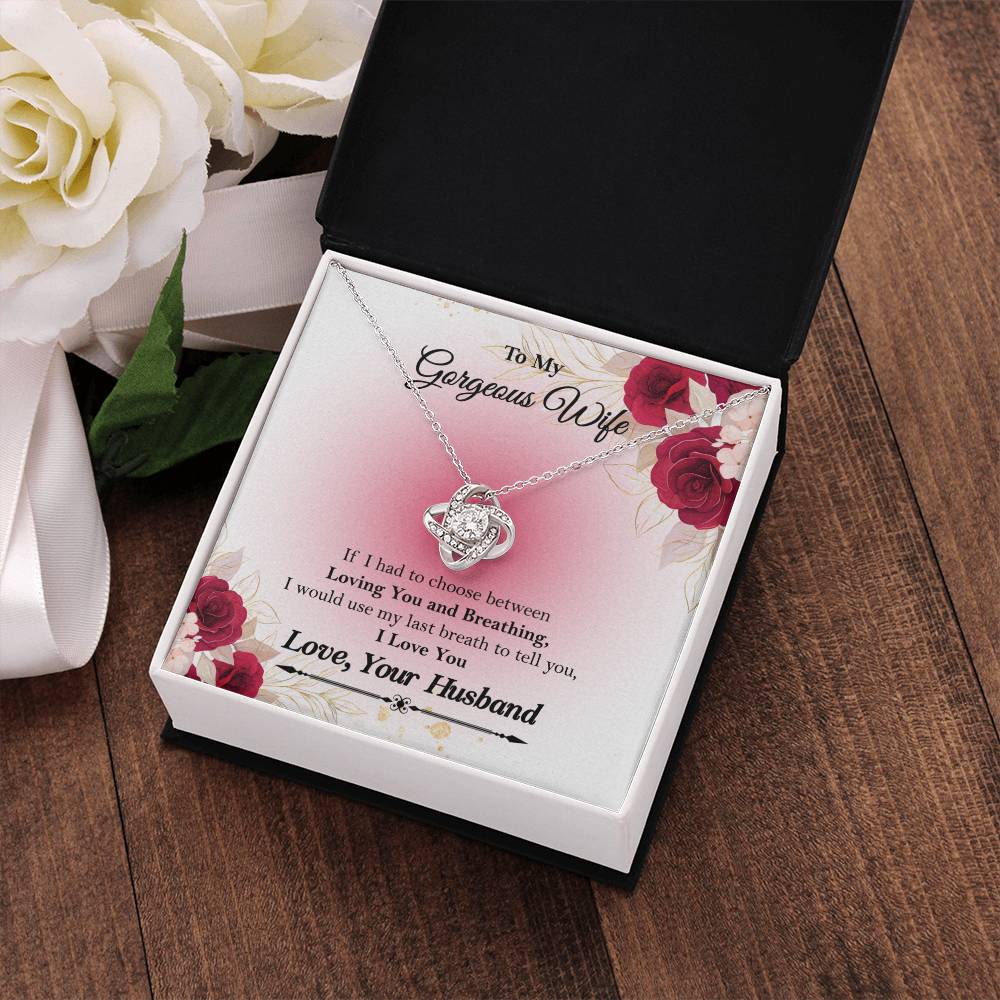 • To My Gorgeous Wife "If I had to choose between" Love Knot Necklace, Anniversary Gift For Wife, Husband To Wife Gift, Wife Valentine Gift